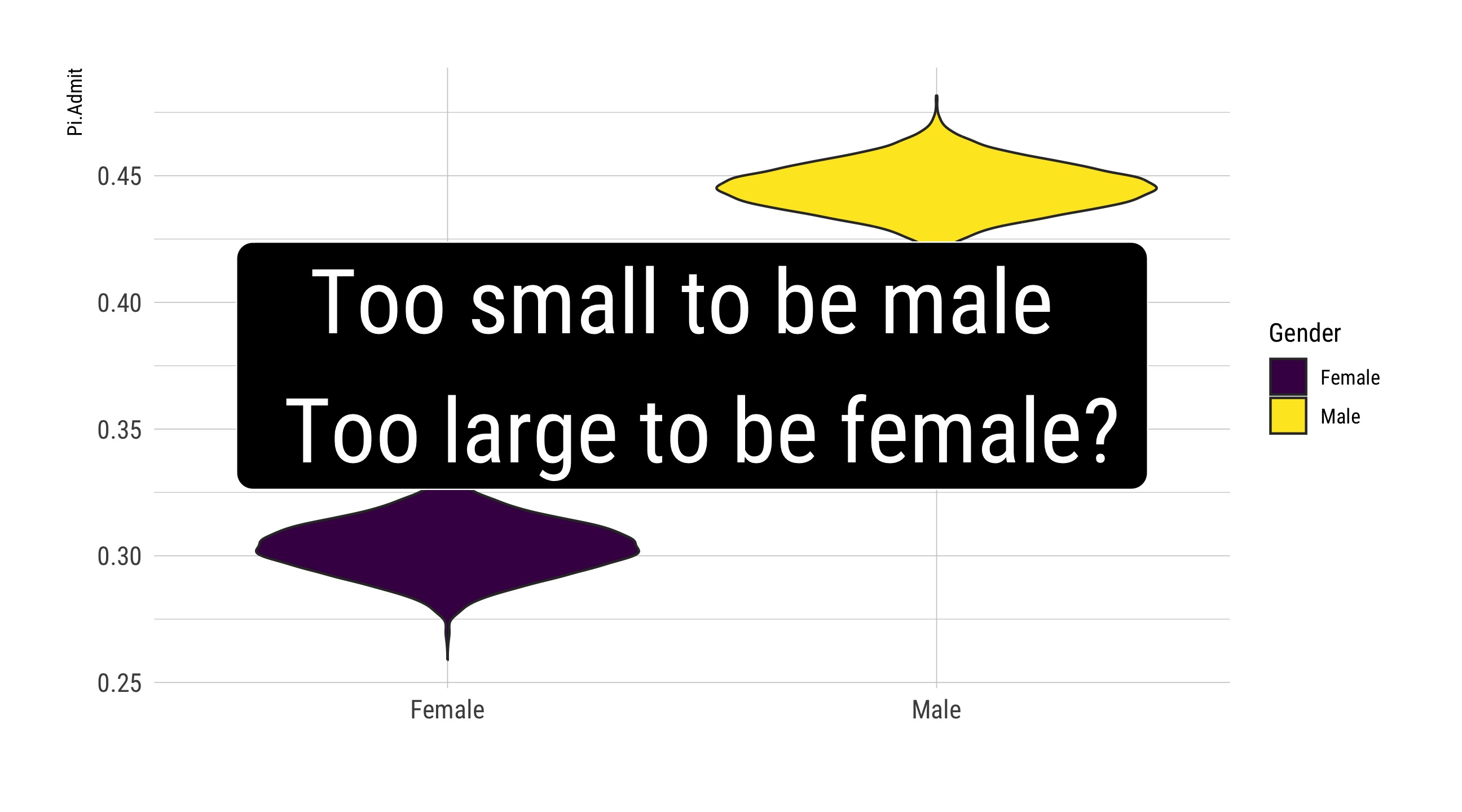 Does the probability of admission depend on whether the applicant is Male or Female?