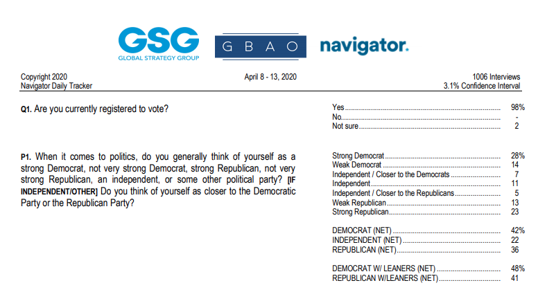 A real poll. They do not have quite enough for a 3% margin of error. But 1006 is enough for a 3.1 percent margin of error…